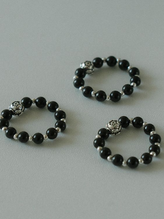 오닉스 4mm 11알 + 실버볼 2mm 10개 + 실버 연꽃 1개