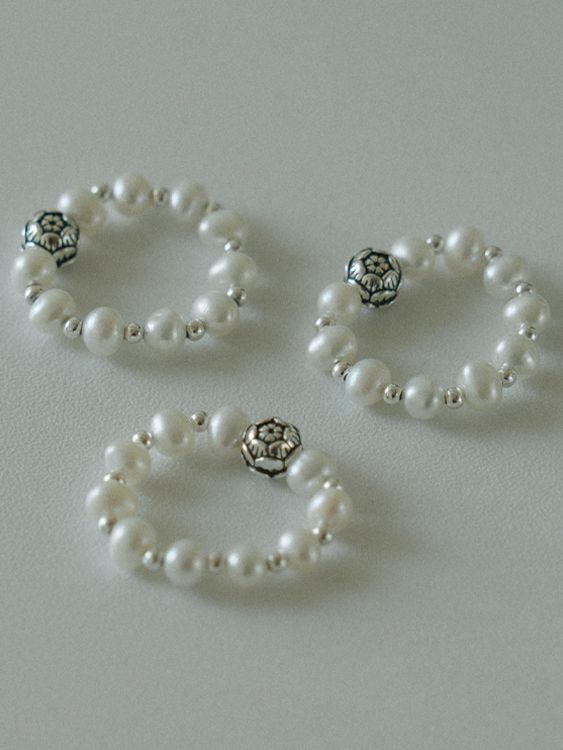 담수진주 4mm 11알 + 실버볼 2mm 10개 + 실버 연꽃 1개
