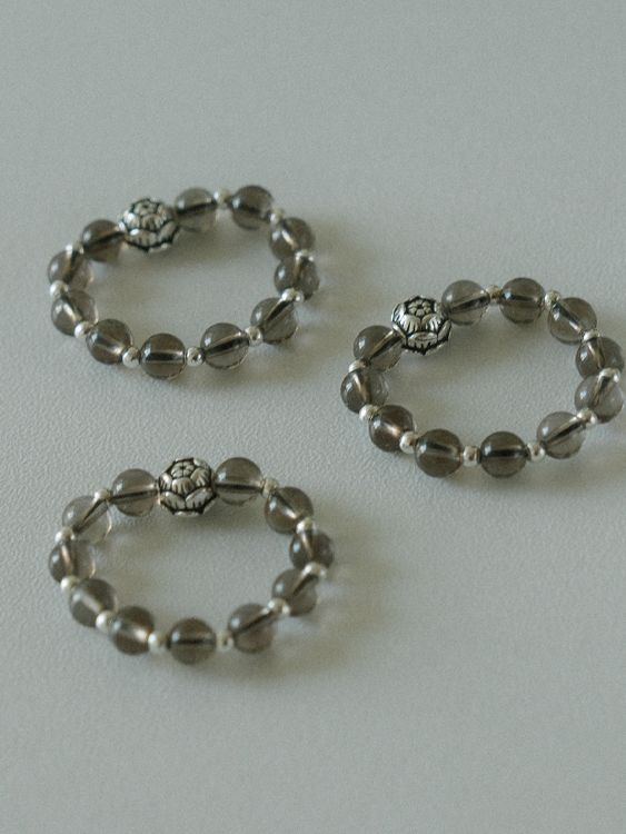 스모키쿼츠 4mm 11알 + 실버볼 2mm 10개 + 실버 연꽃 1개